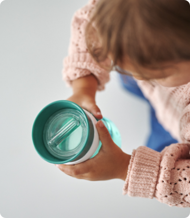 „Als Expertin für eine gesunde Mund- und Sprach-entwicklung rate ich Eltern davon ab, spezielle Trink-lernbecher mit Aufsatz zu verwenden, da diese das Lernen des richtigen Schluckmusters behindern und die Mundmotorik negativ beeinflussen können. Bei diesem Becher ist das anders.“