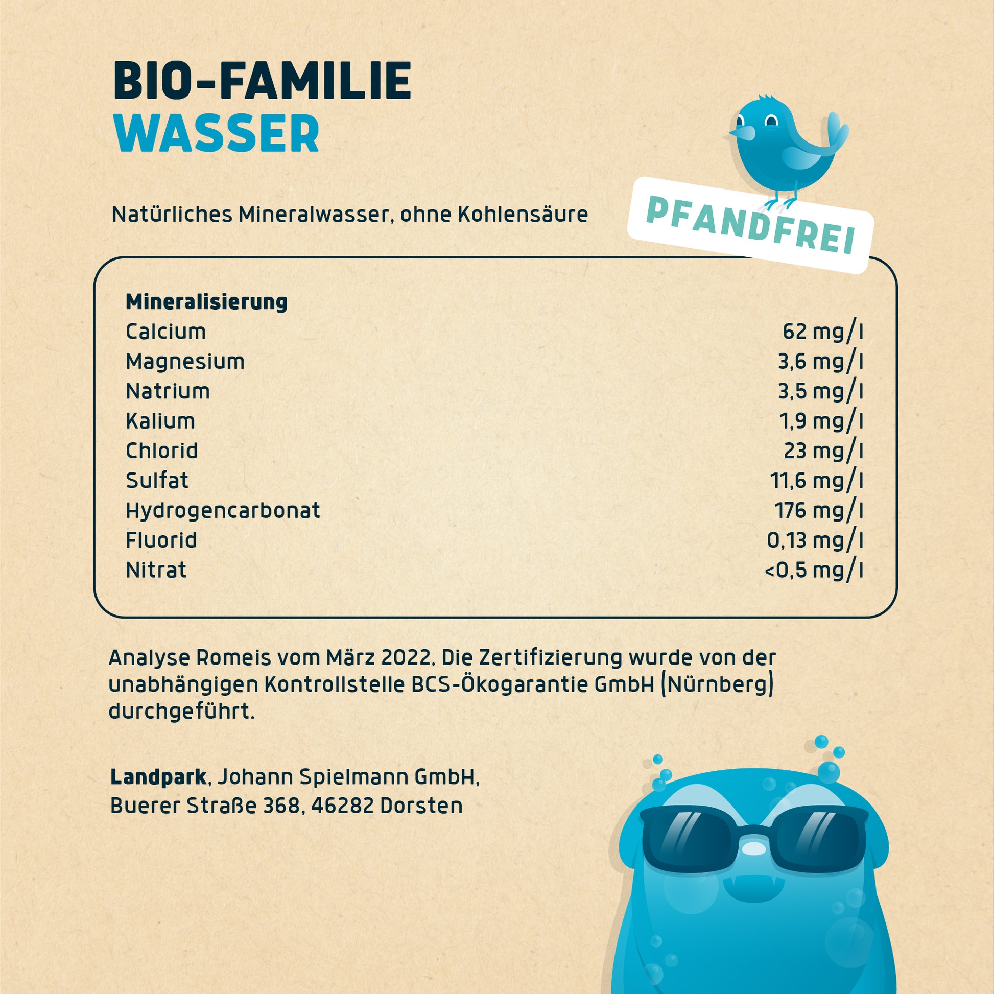 Entdecken Sie das Landpark Bio Familie Wasser - das beste Mineralwasser für Ihre Kleinen! Unser Wasser ist von höchster Qualität und eignet sich perfekt nicht nur für die Durstlöschung, sondern auch für die Zubereitung von Säuglingsnahrung. Mit seiner reinen und natürlichen Zusammensetzung ist das Landpark Bio Familie Wasser die ideale Wahl für Eltern, die nur das Beste für ihre Kinder wollen.