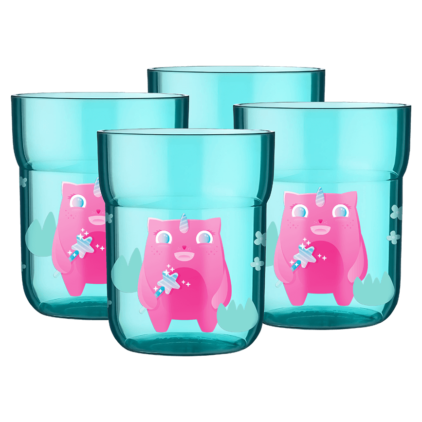 Mit einem Fassungsvermögen von 250 ml sind sie perfekt portioniert für den Durst Ihrer Kinder und dabei platzsparend ineinander stapelbar. So sorgen Sie spielend leicht für Ordnung in Ihrer Küche.